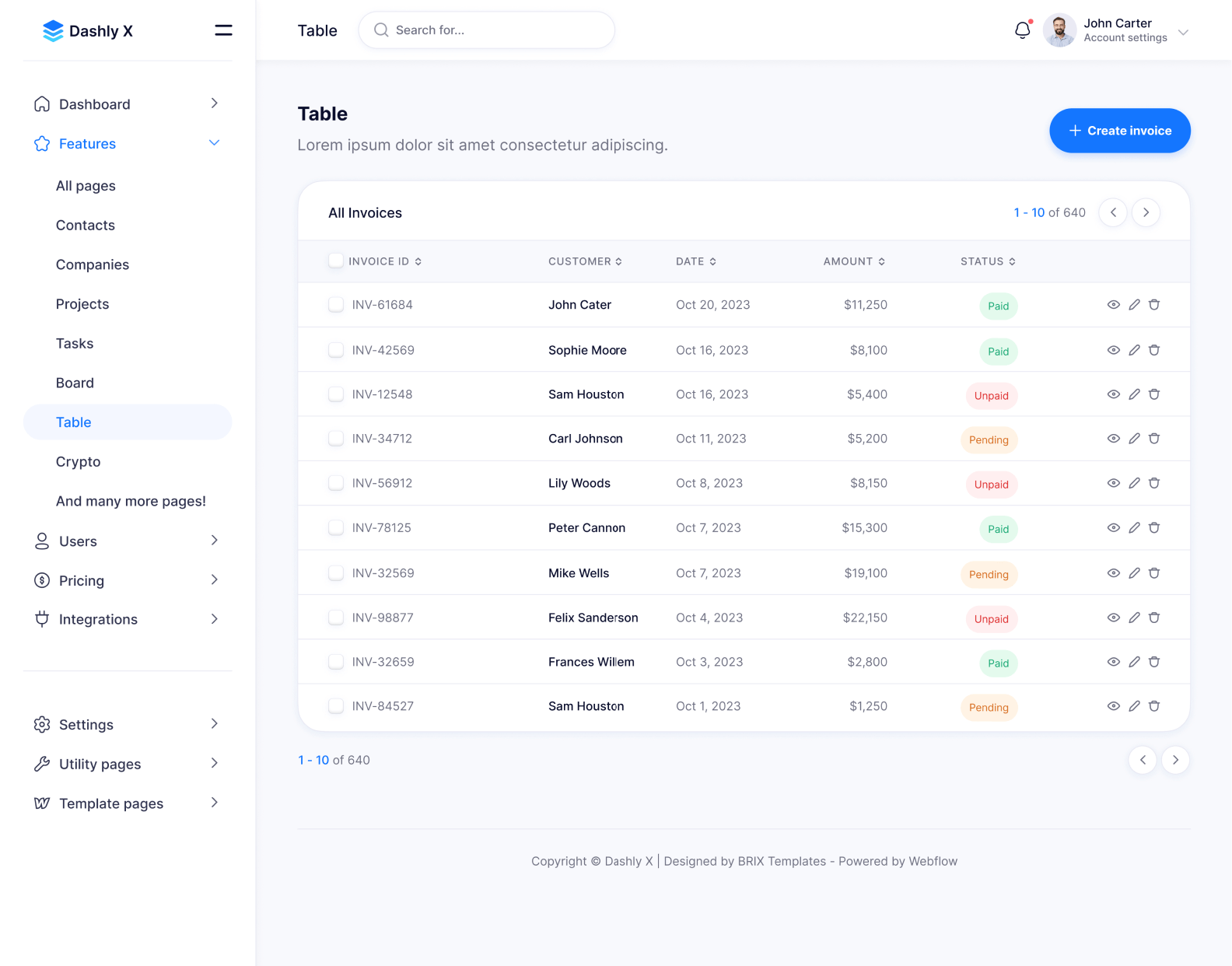 Dashly X Webflow Template & UI Kit
